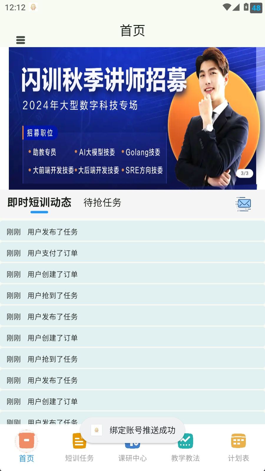 主要用于闪训讲师进行抢单任务查看、抢单、即时短训动态查看.